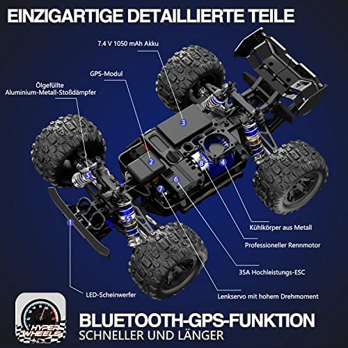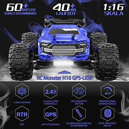 RACXCAR H16H Exklusiv GPS Ferngesteuertes Auto, 1/16 4WD RC Auto mit 60 KM/H Geschwindigkeit, All Terrains APP…