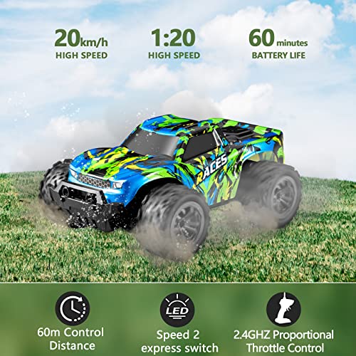 Aunis RC Ferngesteuertes Auto für Kinder, 1:20 Offroad RC Auto mit 60 Minuten Spielzeit, 2,4 GHz 20 km/h Monster Truck…
