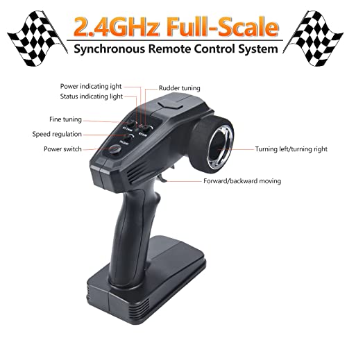 【Hobby Grade Proportional Throttle & Steering Control】2.4GHz Full-Scale-Synchron-Fernsteuerungssystem bringt hervorragende Erfahrung. Dieses RC Auto kann proportional zum Gas und dem Vorderradwinkel gesteuert werden. Sie können die Größe der Drosselklappe Geschwindigkeit, Reifenwinkel Feinabstimmung, Lenkwinkel Feinabstimmung, so dass es einfacher für Anfänger zu akzeptieren, so dass fortgeschrittene Benutzer mehr fortgeschrittene Operationen haben.