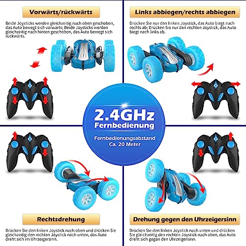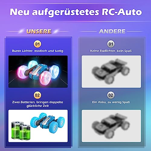 [Spannendes & stabiles Rennwagenspiel]-Geschwindigkeit, ein wichtiger Aspekt bei Spielzeugautos. Ausgestattet mit 2 Motoren, ist auto spielzeug für unglaubliche Geschwindigkeiten gebaut. 2.4 GHz, starke Anti-Interferenz, 20 m lange Übertragungsdistanz versprechen eine stabile Remote-Leistung. Auto ferngesteuert kinder mit diesen Funktionen ermöglichen es Kindern, zusammen mit ihren Freunden zu spielen. 360-Grad-Drehungen und doppelseitiger Flip-Stunt machen es in Rennwagenspielen bekannt.
