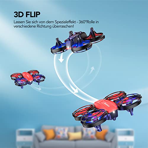 【Coolen Spezieleffekten】Eigenartige Kunstfliege wie 3D Flip in alle Richtungen, Kreisflug, Rotation oder drei einstellbaren Geschwindigkeiten, bringen Ihnen erfreuliche Flugerlebnisse. Mit Kopflos-Modus wird ermöglicht, beim Flug ohne sich um die Richtung der Drohnennase zu kümmern
