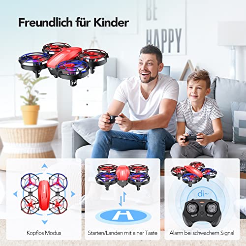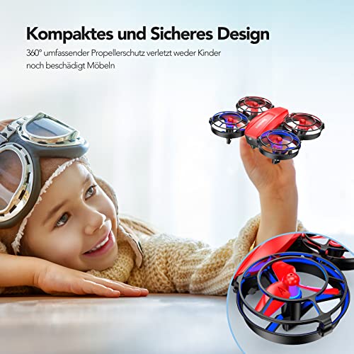 【2023 Neuestes Drohnenmodell】Die Spielzeugdrohne mit LED Lichtern von ultramarinen und robinroten Lichtfarben sieht im Dunkeln besonders fantastisch aus. Unsere Minidrohne hilft Kindern, die Hand-Augen-Koordination sowie die Tiefenwahrnehmung zu entwickeln/stärken. Daneben kann der Drohnenflug bei Jugendlichen das Interesse an der Luftfahrt wecken