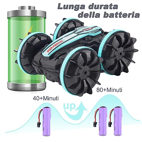 【Lange Spielzeit】Wir statten dieses Amphibienfahrzeug mit einer leistungsstarken Lithiumbatterie mit 1200 mAh aus, und die von uns bereitgestellte 2 * Lithiumbatterie ermöglicht es Kindern, mehr als 80-100 Minuten zu spielen. Im Vergleich zu anderen ferngesteuerten Autos (ca. 15-20 Minuten Spielzeit) kann dieses ferngesteuerte Auto Kindern länger Spaß machen.