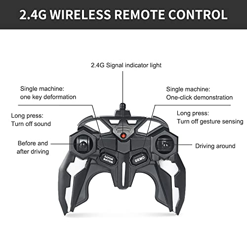 [Zwei Arten des Spielens]: 2 in 1 Design, Auto und Roboter sind in einem Verformungs ferngesteuertes auto integriert. Kann als ferngesteuertes auto für Manipulation und Spiel verwendet werden, kann aber auch zum Roboter umgebaut werden, wenn Sie den Verformungsknopf drücken Die Fernbedienung wechselt automatisch von Auto zu Roboter.