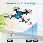 16 MINUTEN LANGE FLUGZEIT MIT DUAL AKKUS: Mini Drohne mit 2 wiederaufladbare modulare Akkus für 16 Minuten Flugzeit. Das entspricht deutlich mehr als dem Durchschnitt von 6,5 Minuten anderer Drohnen.
