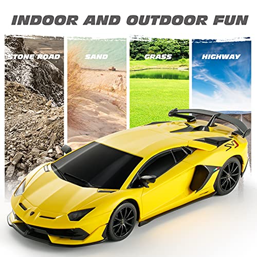 【Offiziell Lizenziertes】 Dieses ferngesteuerte Auto ist offiziell von Lamborghini autorisiert und wird im Maßstab 1/24 nach dem Aussehen des Lamborghini Aventador SVJ hergestellt.