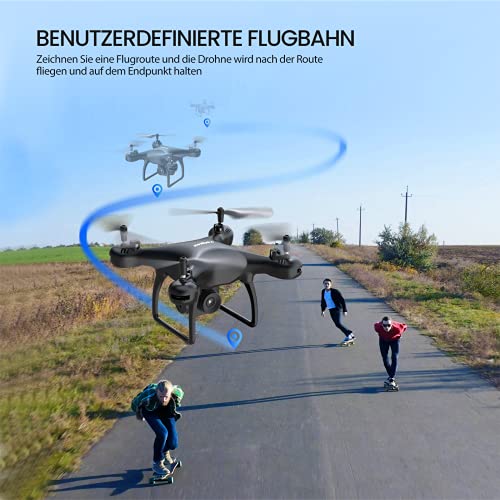 【Benutzerdefinierte Flugbahn】Zeichnen Sie eine Flugroute auf die App auf, wird die Drohne nach der Flugbahn fliegen. Die Drohne kann automatisch und stabil in der Luft schweben. Bei leichter Schwankung kann man mit den Trimmerknöpfen korrigieren. Starten / Landen mit einem Knopf, Anfängern und Kindern gegenüber sehr einfach zu steuern