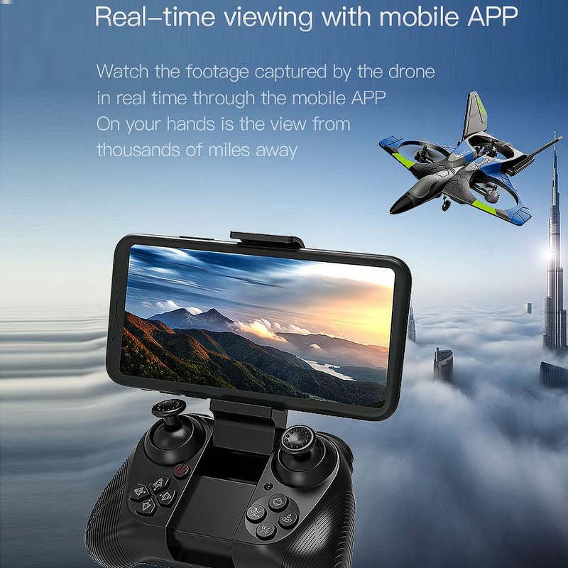 【Sensibler Betrieb】Unser RC Flugzeug verfügt über einen eingebauten 1200mAh Akku, der eine Ladezeit von ca. 1,5 Stunden und eine Spielzeit von ca. 20 Minuten hat. Reaktionsschnelle Bedienung, ob manuelle Joystick-Steuerung oder Schwerkraftsensorsteuerung, Steuerungen neigen das Telefon über die mobile App, um das Flugzeug zu steuern.