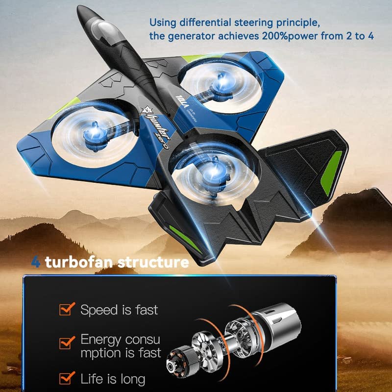 【Hohe Leistung】4 Motoren Turbofan Struktur, 200% Leistungsquellen-Upgrade, mit dem Prinzip der Differentiallenkung, erreicht der Generator 200% Leistung, um seine gute stabile Steuerung, Manövrierleistung und Gleitleistung zu gewährleisten, kann rückwärts und vorwärts, links und rechts, auf und ab fliegen.