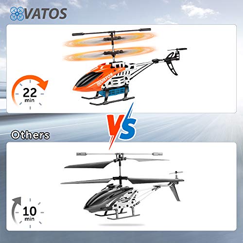 【Größere Flugreichweite und 2 Wählbare Geschwindigkeiten】 – VATOS RC Hubschrauber fliegt mit 2 Geschwindigkeiten, die hoch und niedrig sind, und verfügt über eine helle LED, um im Dunkeln zu fliegen. Der Kontrollabstand beträgt ca. 30 Meter (keine Interferenz und Okklusion und hängt von den Spielvorgängen ab). Erstaunliche Technologie in Ihrer Handfläche und für mehr Spaß bei Indoor-Spielen