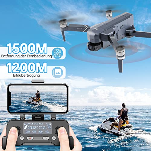 【Leistungsstarke Leistung】Die Reichweite der Fernbedienung kann 1,5 Kilometer erreichen; Die 5G FPV-Übertragungsentfernung kann 1,2 Kilometer erreichen. Der bürstenlose Motor sorgt für einen leiseren, aber kraftvolleren Luftflug und fliegt mit Geschwindigkeiten von bis zu 15 m/s.